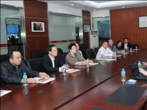 李群主席(左三)等在與公司董事長助理占斯亮(右一)進行交流