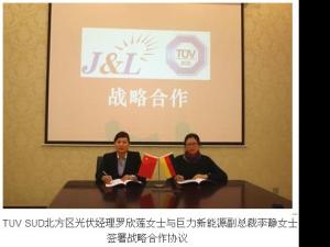 TUV SUD與巨力新能源于2010年開始展開合作,多年來保持著十分密切的合作關(guān)系。此次戰(zhàn)略合作協(xié)議的簽署,標(biāo)志著雙方將就光伏組件、光伏電站檢測與認(rèn)證業(yè)務(wù)、供應(yīng)商評(píng)估等領(lǐng)域展開全方位的戰(zhàn)略合作。百年德國認(rèn)證,一流光伏企業(yè),強(qiáng)強(qiáng)聯(lián)手,共同推動(dòng)光伏產(chǎn)業(yè)進(jìn)程。