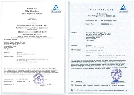 日前,陽(yáng)光電源自主研發(fā)的的MW級(jí)集裝箱式解決方案SG1000TS順利通過(guò)德國(guó)萊茵TÜV認(rèn)證,成為國(guó)內(nèi)第一家獲得該認(rèn)證的光伏系統(tǒng)接入解決方案的領(lǐng)軍產(chǎn)品。