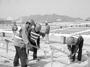 工人在申洲廠房屋頂安裝光伏設(shè)備。(馮瑄周律攝)