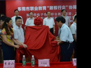 易事特公司董事長何思模教授(前排左二)為東莞電子信息職業(yè)教育聯(lián)盟揭牌