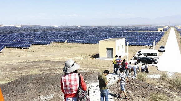 據(jù)介紹,從2011年底簽訂投資協(xié)議,到如今一、二電站建成并網(wǎng),九州方園公司在博州的光伏電站每年可減少碳排放20萬噸,發(fā)電量能點亮1/7個博州。該項目建成后,將成為全國單體最大的光伏電站,年發(fā)電產(chǎn)值超過8億元。