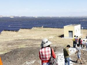 來自湖北天門的九州方園公司工作人員陳運龍,帶領我們穿過光伏“八卦陣”:“這里方圓5000公里,都是我們公司的太陽能板!