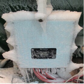 來到結(jié)冰試驗箱跟前,感覺到陣陣寒意。結(jié)冰試驗模擬驗證華為逆變器對冬天場景(西北、東北等地區(qū))的適應能力。該試驗在極低的-40溫度下進行,對樣品間歇的淋水,讓樣品外表面慢慢結(jié)冰,經(jīng)過3天的結(jié)冰后,升高溫度讓結(jié)冰融化,試驗連續(xù)運行1周,施加淋雨結(jié)冰---結(jié)冰融化2個循環(huán)。試驗過程中對華為逆變器執(zhí)行反復上下電、負載開啟、關(guān)閉等各項功能測試。