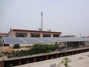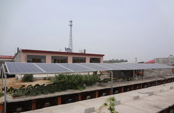 于建光在自家狐窩頂上建起的光伏電站。劉重遠攝 8月5日,據(jù)保定英利集團透露,秦皇島市昌黎縣荒佃莊鎮(zhèn)東騰遠村村民于建光在自家養(yǎng)殖的狐貍窩上安裝的太陽能光伏電站正式并網(wǎng)發(fā)電,成為我國首個光伏與養(yǎng)殖相結(jié)合的分布式光伏發(fā)電項目的成功范例。 據(jù)了解,該電站是我國首個光伏與