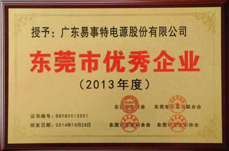 10月28日,2014年東莞市企業(yè)家活動日暨“2013年度優(yōu)秀企業(yè)、優(yōu)秀企業(yè)家評選表彰大會”活動在會展國際大酒店隆重舉行,市委副書記、市長袁寶成、省企業(yè)聯(lián)合會相關(guān)領(lǐng)導(dǎo)參加了表彰活動。易事特憑借領(lǐng)先的技術(shù)實力、高速增長的經(jīng)營業(yè)績和顯著的品牌影響力,榮獲2013年度“東莞市優(yōu)秀企業(yè)”稱號,充分肯定了易事特在東莞市經(jīng)濟社會發(fā)展中的地位和作用。