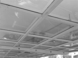 在位于杭州經(jīng)濟技術開發(fā)區(qū)的杭州天裕光能科技有限公司廠區(qū),由他們自己設計制造的兩個太陽能車棚已經(jīng)并網(wǎng)發(fā)電,棚頂上的太陽能光伏板,是公司的主打產(chǎn)品—薄膜光伏板。這兩個車棚中,不透光的那個呈7字形造型,采用單玻組件;半透光的那個采用拉桿造型,時尚新潮,采用雙玻透光率10%的組件。不用擔心半透光的車棚會有電線外露的情況,公司特別采用創(chuàng)新設計,把接線盒裝在側面,線走在組件與組件之間的縫隙里,這樣就更加美觀啦!