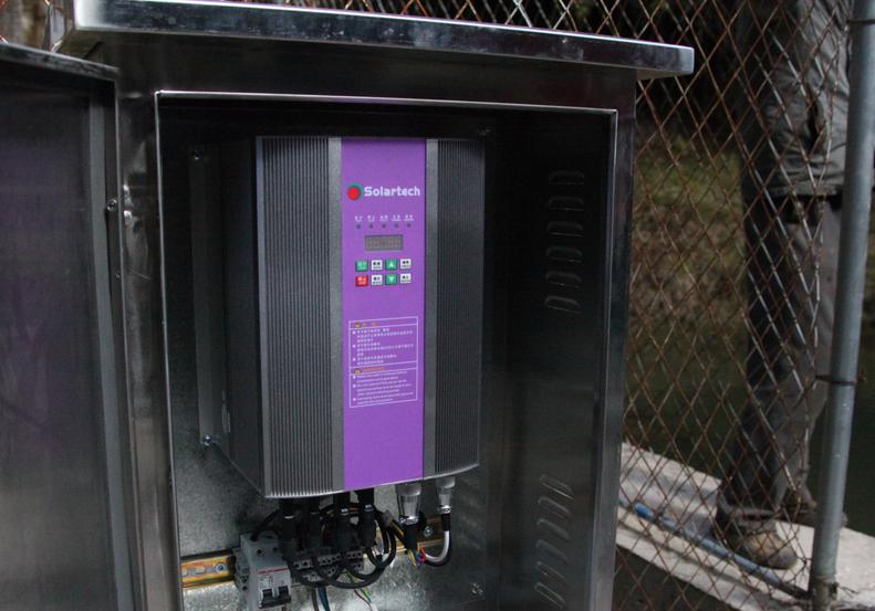 楊善洲精神教育基地管理委員會(huì)了解到瞭望臺(tái)群眾用水緊缺難題后,經(jīng)過討論決定建設(shè)一套太陽能提水系統(tǒng),來滿足瞭望臺(tái)人們?nèi)粘I詈蜕a(chǎn)灌溉用水需求。項(xiàng)目選用深圳天源Solartech SPA43K0040光伏揚(yáng)水系統(tǒng),揚(yáng)程80m,日出水量40m3。光伏提水項(xiàng)目的成功投運(yùn)結(jié)束了瞭望臺(tái)群眾20多年來靠到山下背水吃的歷史。該系統(tǒng)每年可以發(fā)電10512千瓦時(shí),在其25年的使用年限內(nèi),可節(jié)省標(biāo)準(zhǔn)煤98.8噸,減排二氧化碳43.5噸,二氧化硫1.98噸,煙塵1.48噸,灰渣25.7噸;