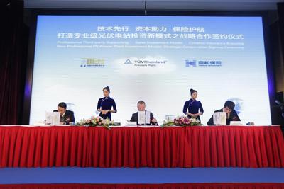 TUV 萊茵開創(chuàng)光伏電站三方合作新模式 在本次峰會上,忠天新能源集團有限公司、萊茵技術(shù)(上海)有限公司與鼎和財產(chǎn)保險股份有限公司共同簽署了《光伏電站技術(shù)支持及風(fēng)險管理戰(zhàn)略合作備忘錄》。三方將結(jié)成長期戰(zhàn)略合作伙伴關(guān)系,在光伏及其他新能源領(lǐng)域就金融、保險、項目技術(shù)盡職調(diào)查等方面開展合作。這是國際金融資本與國際專業(yè)技術(shù)平臺之間的跨界合作,旨在共享資源,開創(chuàng)光伏電站投資合作的全新模式。