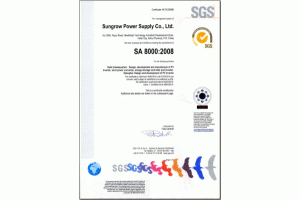 近日,陽光電源順利通過SA8000社會責(zé)任管理體系認(rèn)證審核并取得認(rèn)證證書,這既是對陽光電源多年來主動承擔(dān)并踐行企業(yè)社會責(zé)任的充分肯定,也標(biāo)志著公司的產(chǎn)品和服務(wù)已達(dá)到并符合SA8000社會責(zé)任標(biāo)準(zhǔn)的各項要求。