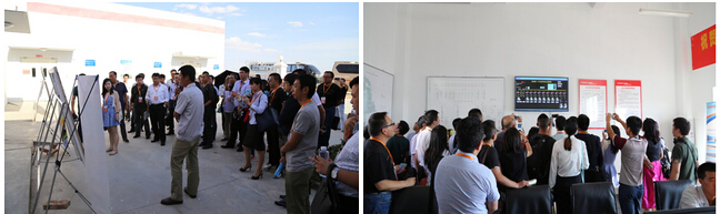 綜合電站中5MW的其他品牌組串式逆變器的運(yùn)營(yíng)經(jīng)驗(yàn),現(xiàn)場(chǎng)工作人員還與參觀嘉賓做了經(jīng)驗(yàn)分享,組串式逆變器在適合西北大型荒漠地面電站應(yīng)用上有局限性。由于直接暴露在戶外,一些實(shí)際應(yīng)用中的組串逆變器的顯示屏已經(jīng)出現(xiàn)凝露現(xiàn)象,導(dǎo)致屏幕模糊而且容易引起內(nèi)部短路造成安全隱患,產(chǎn)品防護(hù)能力在西北晝夜溫差大的戶外環(huán)境里也需重新審視。