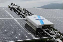 使用該公司的清潔機器人,首先要在太陽能電池板上設置軌道,機器人沿軌道移動,一邊灑水,一邊用刷子清洗。