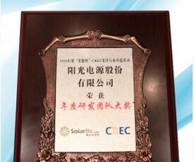本年度"光能"杯光伏行業(yè)獎(jiǎng)評(píng)活動(dòng)吸引了中國(guó)光伏領(lǐng)域上百家重量級(jí)企業(yè)的積極參與,以樹立行業(yè)標(biāo)桿并推動(dòng)整個(gè)行業(yè)健康理性發(fā)展為目標(biāo)!把邪l(fā)團(tuán)隊(duì)“獎(jiǎng)旨在表彰多年來能夠持之以恒專注光伏研發(fā)創(chuàng)新、引領(lǐng)技術(shù)潮流、不斷推出行業(yè)標(biāo)桿產(chǎn)品的企業(yè)。陽光電源憑借全線光伏逆變器99%效率的技術(shù)優(yōu)勢(shì)及對(duì)產(chǎn)業(yè)化的發(fā)展貢獻(xiàn),榮獲“最佳研發(fā)團(tuán)隊(duì)”。
