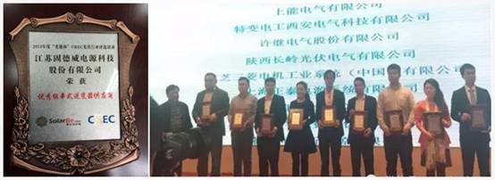 11月5日,2015年“光能杯”CREC光伏行業(yè)評(píng)選活動(dòng)也在此正式落下帷幕,該評(píng)選由國(guó)家太陽(yáng)能光伏產(chǎn)品質(zhì)量監(jiān)督檢驗(yàn)中心、無(wú)錫新能源商會(huì)、Solarbe索比光伏網(wǎng)聯(lián)合發(fā)起舉辦。光伏產(chǎn)業(yè)領(lǐng)域的權(quán)威專家、企業(yè)領(lǐng)袖、技術(shù)精英將紛紛亮相評(píng)獎(jiǎng)盛典,共享這一年度盛會(huì)。固德威作為光伏領(lǐng)跑企業(yè),受邀參加并獲得了“光能杯”“優(yōu)秀組串式逆變器供應(yīng)商”的榮譽(yù),充分肯定了固德威在組串式逆變器領(lǐng)域取得的成績(jī)。