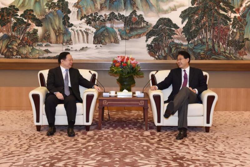 河南省人民政府秘書長(zhǎng)郭洪昌與招商局集團(tuán)總經(jīng)理李曉鵬親切交談