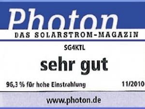 近日,全球光伏行業(yè)的權(quán)威雜志—Photon德文版2010年第11期刊登的全球光伏逆變測(cè)評(píng)中,來(lái)自中國(guó)的陽(yáng)光電源(SUNGROW)股份有限公司的4KW光伏逆變器憑借在測(cè)試和運(yùn)行中的良好表現(xiàn),獲得了Photon實(shí)驗(yàn)室的優(yōu)質(zhì)評(píng)定,被評(píng)為A級(jí),成為中國(guó)大陸首個(gè)通過(guò)測(cè)試并獲得A級(jí)評(píng)定的產(chǎn)品。