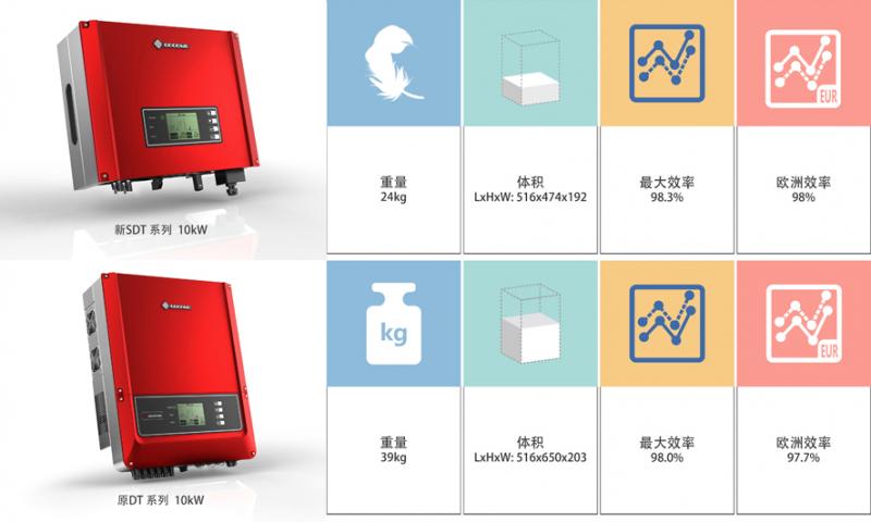 下面是一組固德威小三相SDT-10kW與大三相DT-10kW的對比圖: