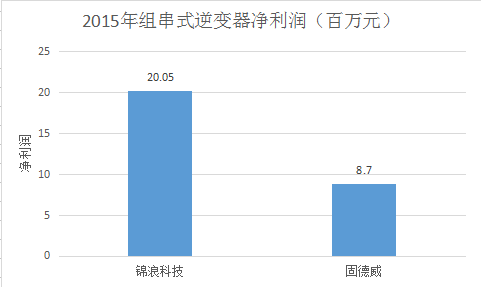 錦浪科技2015年銷售額約1.77億元,凈利潤約為2005萬元,為目前掛牌組串逆變器廠家中業(yè)績最優(yōu)龍頭企業(yè)。
