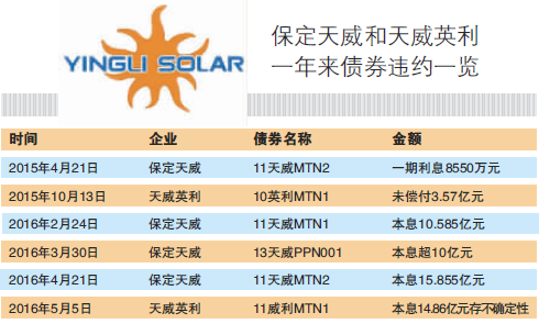 昨日,天威英利發(fā)布公告稱,將于5月12日到期的一只中票的本息兌付存在不確定性,總額超14億元。
