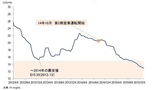 關(guān)于太陽能電池用材料,德山公司也因制造多晶硅的德山馬來西亞,而在2015財年的財報中計入了1234億日元的資產(chǎn)減值損失。原因是,根據(jù)多晶硅的行情低迷等造成業(yè)務(wù)環(huán)境惡化的情況,做了成本的徹底削減等,調(diào)整了中長期的業(yè)務(wù)計劃。