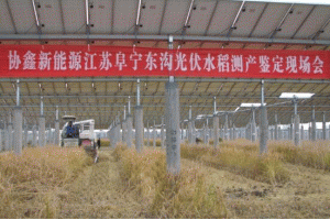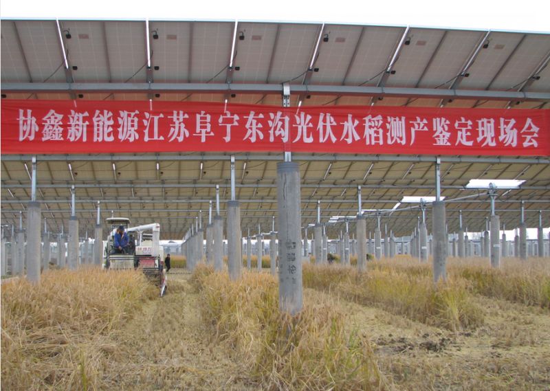 通常情況下,太陽(yáng)能發(fā)電站的光伏板距地面僅有0.5米,大多數(shù)地面處于閑置狀態(tài),即使土壤條件允許,也只能長(zhǎng)一些喜陰的矮桿旱田農(nóng)作物,效益不高?紤]到光伏發(fā)電和農(nóng)業(yè)生產(chǎn)在土地利用上的兼容與互補(bǔ),實(shí)現(xiàn)一地兩用、一光多享,最大限度地提高東溝30兆瓦太陽(yáng)能發(fā)電站的土地利用率和產(chǎn)出率,協(xié)鑫新能源公司在項(xiàng)目設(shè)計(jì)階段,就聘請(qǐng)南京農(nóng)業(yè)大學(xué)、江蘇省農(nóng)科院等科研院所專(zhuān)家實(shí)地考察論證,最終確定種植水稻的方案。