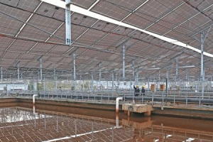 該項(xiàng)目在國(guó)內(nèi)首創(chuàng)“污水處理廠+魚(yú)腹式光伏支架系統(tǒng)”的模式,解決了“污水處理廠跨度空間大和光伏電站融合難”的問(wèn)題。作為傳統(tǒng)“耗能大戶”的污水處理廠,通過(guò)建設(shè)分布式光伏電站完成電量自發(fā)自用,實(shí)現(xiàn)經(jīng)濟(jì)效益和環(huán)境效益的雙贏。將光伏電站建設(shè)在污水處理池上方,既不占用額外土地,也不影響污水處理廠的正常運(yùn)營(yíng)。同時(shí),與傳統(tǒng)鋼架結(jié)構(gòu)方案相比,魚(yú)腹式光伏支架結(jié)構(gòu)優(yōu)美、用鋼量少,承重強(qiáng),成本低,能更充分利用污水處理廠空間。