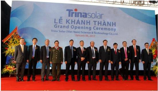 1月6日, 由全球領(lǐng)先的太陽能光伏組件、光伏發(fā)電系統(tǒng)解決方案及服務(wù)供應(yīng)商——天合光能有限公司所控股的太陽能光伏電池工廠在越南北江省云中工業(yè)區(qū)正式開業(yè),并憑借其單體設(shè)計(jì)1GW的總產(chǎn)能成為目前越南國內(nèi)最大規(guī)模的太陽能光伏電池制造項(xiàng)目。
