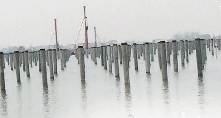 圖為:內(nèi)泊湖內(nèi),柱樁密密麻麻
