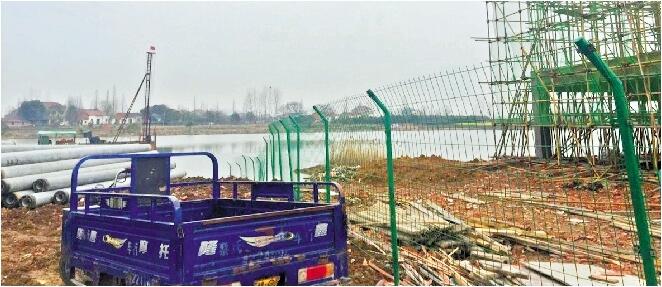 2月23日,記者來到位于沙市區(qū)觀音垱鎮(zhèn)內(nèi)泊湖。站在大堤上遠望,湖中有序地豎起了大量柱樁,直徑約40厘米,伸出水面1米有余,綿延不斷,蔚為壯觀。
