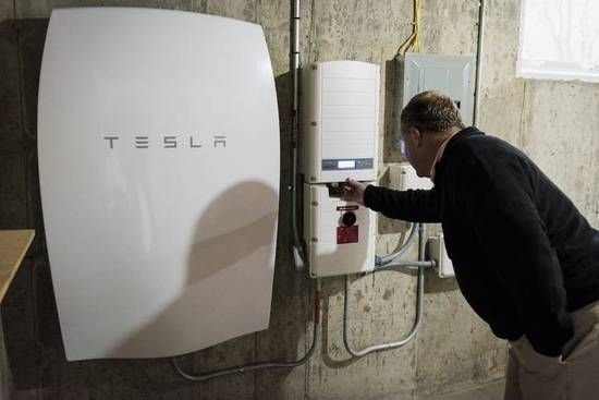 特斯拉在去年推出的家用蓄電池Powerwall 圖: 彭博社