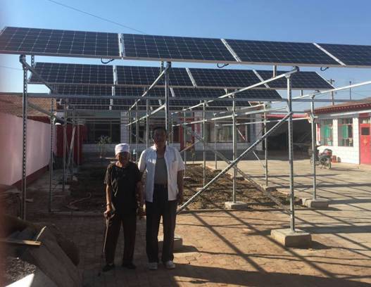 在前后忙碌奔波近1年后,馬雙喜家的分布式光伏發(fā)電系統(tǒng)最終建成。一排一人多高的光伏支架立在院子里的菜園子上,上面是漂亮的單晶電池組件,構(gòu)成了一個(gè)微型的“農(nóng)光互補(bǔ)”發(fā)電項(xiàng)目。