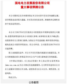 同日,國電電力發(fā)布公告稱,公司6月2日接到公司控股股東中國國電集團(tuán)公司通知,獲悉其“擬籌劃涉及本公司的重大事項”,公司股票同樣自6月5日起停牌。