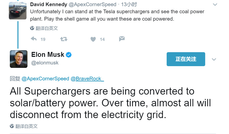 6月10日有位網(wǎng)友在Twitter上@特斯拉CEO Elon Musk:“呵呵,在特斯拉超級充電站身上我看到了火力發(fā)電廠的影子,所有你玩的這些概念游戲背后(動力來源)都是由煤炭燃燒驅(qū)動的!