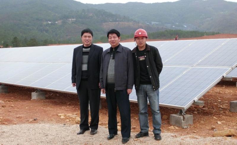 3月16日上午由福建龍巖市連城縣委副書(shū)記、紀(jì)委書(shū)記、連城工業(yè)園區(qū)主任廖繼清,連城縣建設(shè)局副局長(zhǎng)、連城工業(yè)園區(qū)副主任羅積騰等領(lǐng)導(dǎo)組成的考察團(tuán)蒞臨中海陽(yáng)連城3MWp光伏電站工程現(xiàn)場(chǎng)視察施工情況。