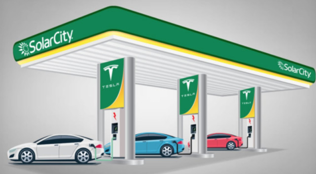 這些從表面上來(lái)看都說(shuō)的通,特斯拉強(qiáng)調(diào)未來(lái)可再生能源的利用,Solarcity正好補(bǔ)足了能源生產(chǎn)的上游,網(wǎng)絡(luò)上甚至流傳出下圖:即完全由Solarcity太陽(yáng)能搭建的特斯拉充電站,能夠利用太陽(yáng)能,滿足特斯拉電動(dòng)車(chē)的充電。