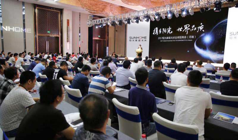 2017陽(yáng)光家庭光伏全球招商會(huì)河南站在鄭州盛大舉行,來(lái)自河南全省17個(gè)地市的200多位意向經(jīng)銷商參會(huì),最終現(xiàn)場(chǎng)簽約額達(dá)1.19億元,實(shí)現(xiàn)河南全境布局。