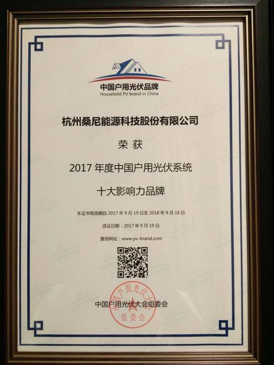 9月19日,2017中國(guó)戶用光伏大會(huì)在“泉城”濟(jì)南盛大舉行,桑尼能源作為本次大會(huì)聯(lián)合贊助商應(yīng)邀出席。經(jīng)過品牌指數(shù)評(píng)比、數(shù)據(jù)調(diào)研和專家評(píng)審等眾多遴選環(huán)節(jié),桑尼能源憑借在戶用光伏領(lǐng)域的實(shí)力貢獻(xiàn),摘獲“2017年度中國(guó)戶用光伏系統(tǒng)十大影響力品牌”大獎(jiǎng)。