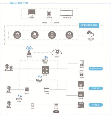 樂伏智能云解決方案包括:電站設(shè)計(jì)、電站建設(shè)、電站監(jiān)控、電站運(yùn)維4大云平臺(tái)。