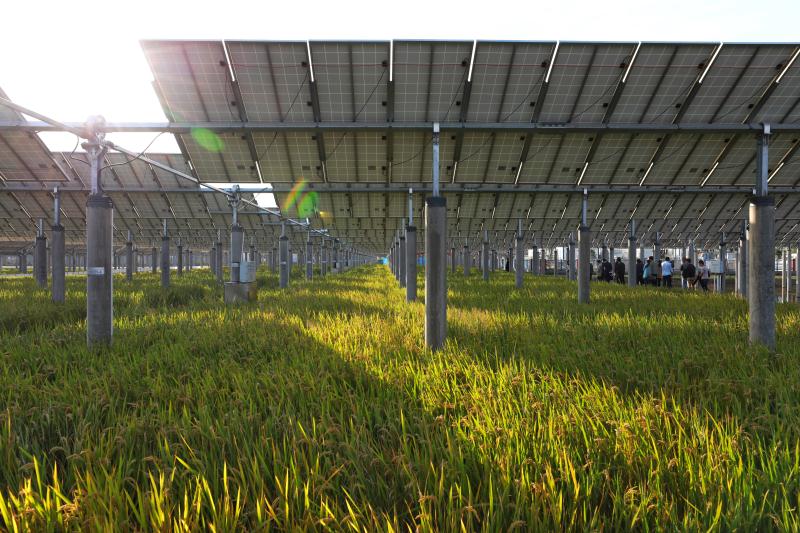 去年參加水稻測產(chǎn)的江蘇省農(nóng)委水稻專家楊洪建博士對協(xié)鑫阜寧光伏水稻優(yōu)質(zhì)高產(chǎn)表示高度贊賞。他認(rèn)為:"高支架抬高光伏板,寬跨度合理安裝單板組件,使用機(jī)器人清掃技術(shù),既使陽光對農(nóng)作物的影響減少到最低,又充分利用土地,實現(xiàn)農(nóng)業(yè)種植與光伏發(fā)電的完美組合,大大提高單位面積土地使用率和產(chǎn)出率,讓一塊土地帶來兩份收入,值得推廣。"