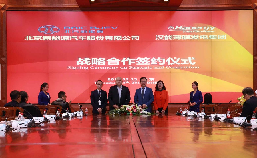 日前,記者獲悉,漢能薄膜發(fā)電集團(tuán)與北京新能源汽車股份有限公司(以下簡(jiǎn)稱“北汽新能源”)簽署戰(zhàn)略合作協(xié)議,雙方將在“智慧交通,綠色出行”的合作框架內(nèi),推進(jìn)汽車天窗車頂解決方案、新能源汽車充換電站、共享電動(dòng)汽車、園區(qū)及廠房分布式能源建設(shè)等領(lǐng)域開展全方位合作。值得一提的是,這是繼漢能薄膜發(fā)電與