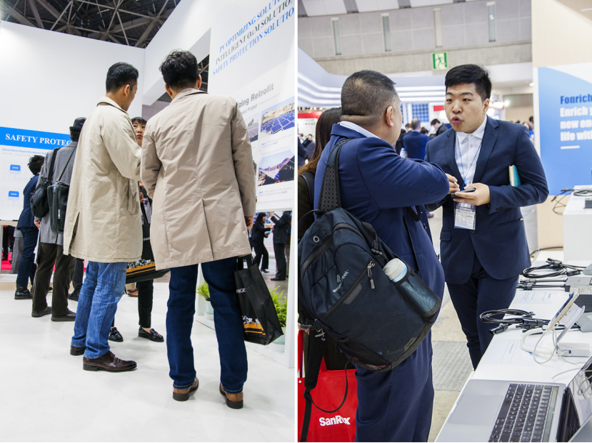 豐郅展臺位于東1館E3-22展位,分別展示了豐郅新能源日臻完善的智能優(yōu)化系統(tǒng)、精細監(jiān)控系統(tǒng)及電站安全保護系統(tǒng),為光伏行業(yè)的蓬勃發(fā)展提供一系列的智慧能源解決方案與服務(wù)。除日本觀眾以外,前來觀摩的還不乏一些東南亞客戶,如韓國,越南,印尼,泰國,臺灣等,還有一些國內(nèi)客戶,客戶類型包括代理商,業(yè)主,開發(fā)商,EPC,系統(tǒng)集成商等。在一系列科技產(chǎn)品中,豐郅光伏功率優(yōu)化器引起了海內(nèi)外觀眾的極大興趣,他們駐足在展臺中間,與工作人員熱切交談,紛紛感嘆豐郅功率優(yōu)化器外觀精致、科技感十足、品質(zhì)卓越。