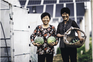 阜寧東溝農(nóng)光互補(bǔ)光伏電站在2016年1月31日并網(wǎng),是協(xié)鑫響應(yīng)國家“光伏領(lǐng)跑者”計(jì)劃要求,采用全國乃至全球最先進(jìn)光伏技術(shù)打造的示范性項(xiàng)目。對于當(dāng)?shù)卮迕駚碚f,“光伏+農(nóng)業(yè)+扶貧”的模式不僅帶來了較高的土地租金收益,還提供了就地就業(yè)的好崗位。一手拿租金、一手領(lǐng)工資已成為當(dāng)?shù)卮迕袷杖氲男聛碓础?/p>