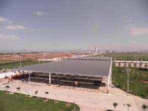 本項目總裝機面積約12000平方米,安裝于基地樓頂及停車棚頂部,年發(fā)電總量約為158.76萬千瓦時。從2010年5月正式動工,歷時半年于去年11月正式竣工。在25年運行期內(nèi)預計可節(jié)約標煤1.625萬噸、淡水13.649萬噸,減排粉塵79.264噸、二氧化硫286.264噸、二氧化碳2.535萬噸,具有良好的節(jié)能、節(jié)水和環(huán)保的社會效益。還被呼和浩特市政府列為參觀游覽點。