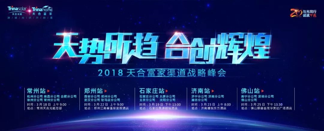 “天勢(shì)所趨,合創(chuàng)輝煌”, 3月18日,天合原裝招商會(huì)常州站近2000名用戶及經(jīng)銷商齊聚會(huì)場(chǎng),打響2018年3月渠道會(huì)議的第一槍;3月19日,石家莊站700名經(jīng)銷商齊聚會(huì)場(chǎng),再創(chuàng)佳績(jī);3月22日,鄭州站500名經(jīng)銷商凝心聚力繪藍(lán)圖,共商大計(jì)謀發(fā)展;3月23日,濟(jì)南站近900名經(jīng)銷商齊聚會(huì)場(chǎng),預(yù)先準(zhǔn)備的簽約合同供不應(yīng)求;3月25日,佛山站近400名經(jīng)銷商齊聚會(huì)場(chǎng),現(xiàn)場(chǎng)人數(shù)爆棚,很多人站著全程聽完會(huì)議,簽單額再刷新高。