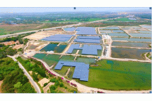 記者跟隨“行走的雙!毙》株(duì)來(lái)到基地時(shí),烈日炎炎,陽(yáng)光刺眼,工人們正戴著安全帽揮汗如雨地作業(yè)。項(xiàng)目經(jīng)理指著道路兩旁的光伏魚塘向記者介紹:“本項(xiàng)目規(guī)劃建設(shè)規(guī)模為20MW。電站建成后,將發(fā)展光伏與漁業(yè)相結(jié)合的模式,實(shí)現(xiàn)魚、鴨、鵝、蓮藕、菱角等的綜合養(yǎng)殖,促進(jìn)傳統(tǒng)養(yǎng)殖向現(xiàn)代漁業(yè)轉(zhuǎn)型升級(jí)。”