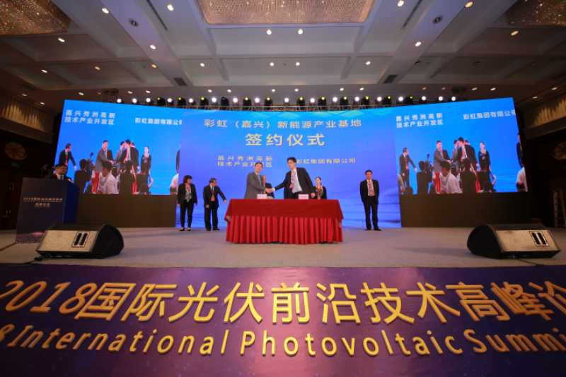 太陽能發(fā)電網嘉興報道:在5月25日于嘉興舉行的“2018國際光伏前沿技術高峰論壇”上,中國電子彩虹集團有限公司與嘉興市政府現(xiàn)場簽約,其2GW異質結電池智能制造基地項目正式落戶嘉興秀洲國家高新區(qū)光伏小鎮(zhèn)。