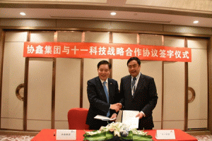 2018年5月27日,協(xié)鑫集團(tuán)有限公司(下稱協(xié)鑫集團(tuán))董事長朱共山、信息產(chǎn)業(yè)電子第十一設(shè)計研究院科技工程股份有限公司(下稱十一科技)董事長趙振元共同簽署重大戰(zhàn)略合作框架協(xié)議,雙方擬在電子高科技及高端制造方面展開全方位合作。