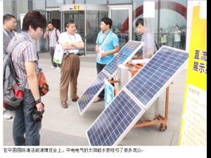 “這是什么啊?”日前,在中國(guó)國(guó)際清潔能源博覽會(huì)上,中電電氣集團(tuán)展臺(tái)上一套獨(dú)特的裝置引來(lái)許多好奇觀眾。這是一套太陽(yáng)能水泵系統(tǒng),一個(gè)太陽(yáng)能發(fā)電裝置加一個(gè)水泵,就可以在沒(méi)有外接電源的情況下不斷把井底的水提上來(lái),用于灌溉或是飲用,這對(duì)于那些電網(wǎng)尚不發(fā)達(dá)的山區(qū)或是沙漠來(lái)說(shuō),是莫大的福音。據(jù)悉,這套太陽(yáng)能水泵系統(tǒng)是由中電電氣(南京)太陽(yáng)能研究院開(kāi)發(fā)的,8月份即將實(shí)現(xiàn)量產(chǎn),且可以根據(jù)用戶的需求進(jìn)行個(gè)性化定制。