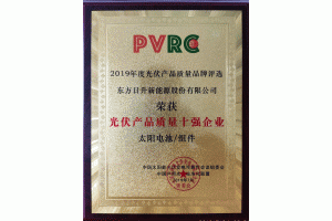 在光伏產(chǎn)業(yè)面臨轉(zhuǎn)型升級(jí)、平價(jià)上網(wǎng)即將到來(lái)的行業(yè)發(fā)展趨勢(shì)下,我國(guó)正在加速?gòu)摹肮夥髧?guó)”向“光伏強(qiáng)國(guó)”邁進(jìn),技術(shù)迭代帶來(lái)的產(chǎn)品質(zhì)量的提升將逐步成為推動(dòng)行業(yè)發(fā)展的主要?jiǎng)恿Α?月19日至21日,由中國(guó)可再生能源學(xué)會(huì)主辦的2019中國(guó)太陽(yáng)能光伏發(fā)電可靠性研討會(huì)(PVRC)在蘇州召開(kāi),A股龍頭光伏企業(yè)東方日升憑借高效可靠的太陽(yáng)能電池和光伏組件產(chǎn)品榮獲“2019年度光伏產(chǎn)品十強(qiáng)質(zhì)量企業(yè)”榮譽(yù)稱(chēng)號(hào)(圖1)。