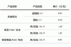 8月26日,通威太陽能官網(wǎng)公布2019年9月電池片定價,各規(guī)格電池均與8月定價保持相同,156.75尺寸PERC電池片1元/瓦,158.75尺寸PERC電池片1.03元/瓦。
